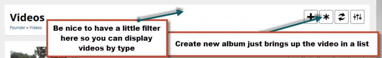 I like the combined videos module but one thing is that in the menu there is a create album button but when clicked it just brings up a page listing videos and does not seem to be a way to create an album.