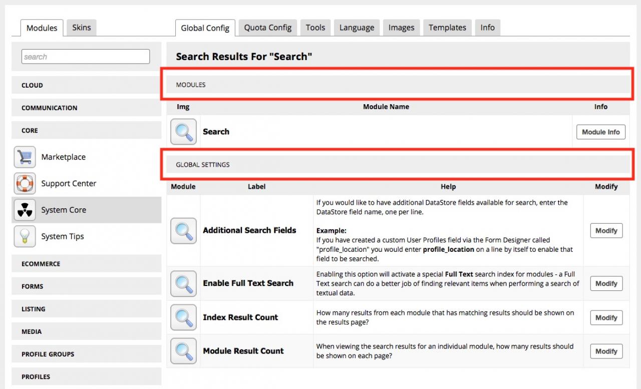 "Enabling this option will activate a special Full Text search index for modules - a Full Text search can do a better job of finding relevant items when performing a search of textual data."