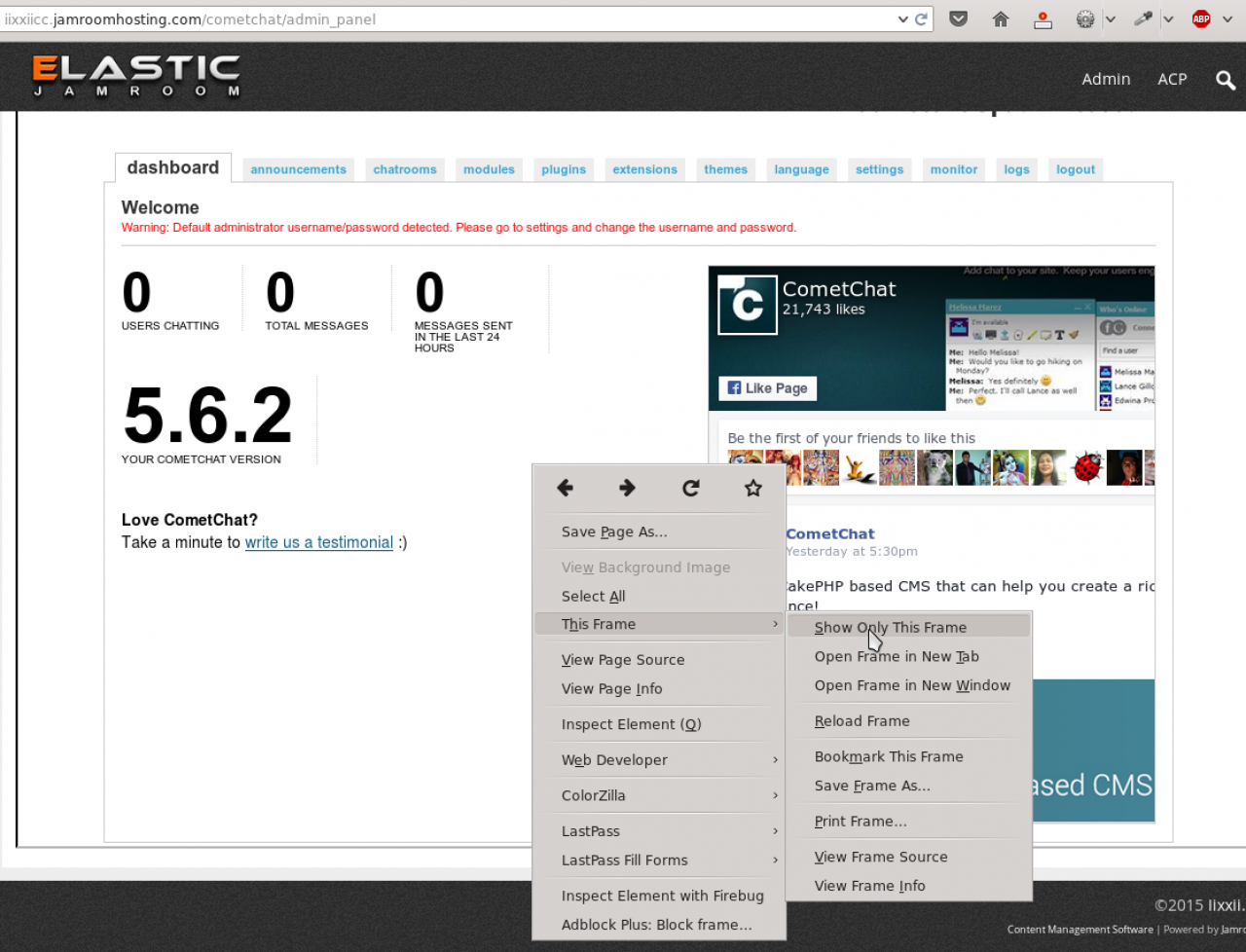 Hmm...my situation is likely different from yours then. I got Cometchat before they had a jamroom module, so yes I had to set up a CC account at first. The CC control panel at that time was online outside of JR- not inside a JR module. So I used to have to log into the CC website to access controls or support.