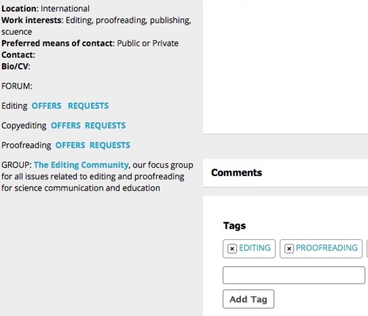 Item 2. The sidebar of the public profile for "Editing and Proofreading" in my Editing Hub quota. Here the form fields displayed are the same as in (1). I don't know how to exclude them from this quota and profile, and if I want to display other form fields here, they will automatically by displayed in (1). Without knowing more complex CSS, I can't control how form fields are displayed for different quotas and profiles.
