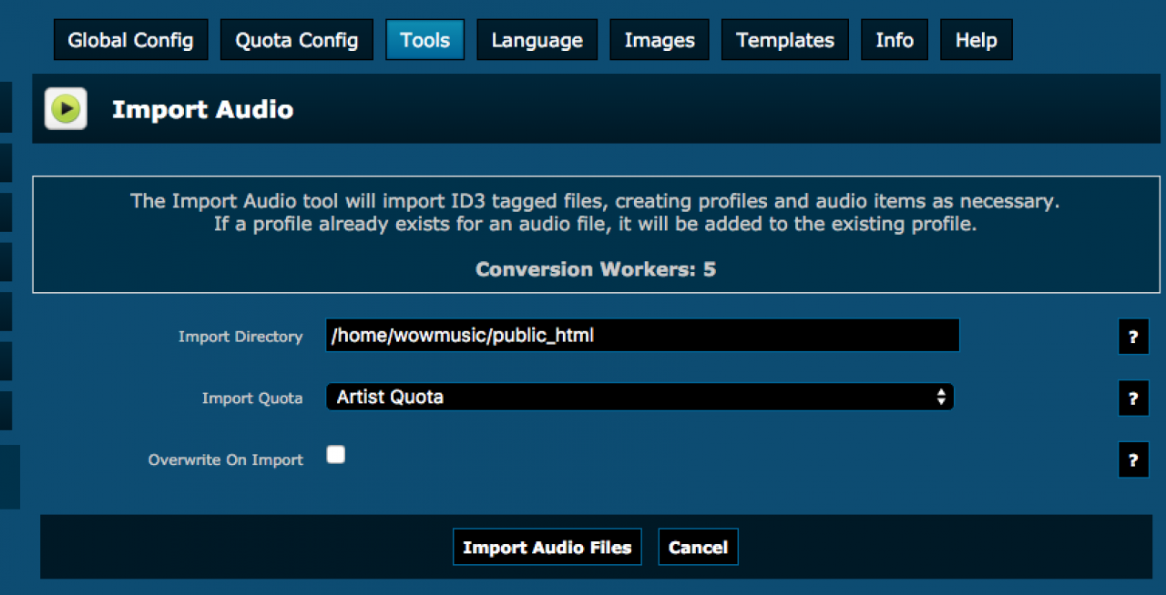 Then i when and try the import tool on audio module, i upload the mp3 to a folder via ftp and try the import tool,