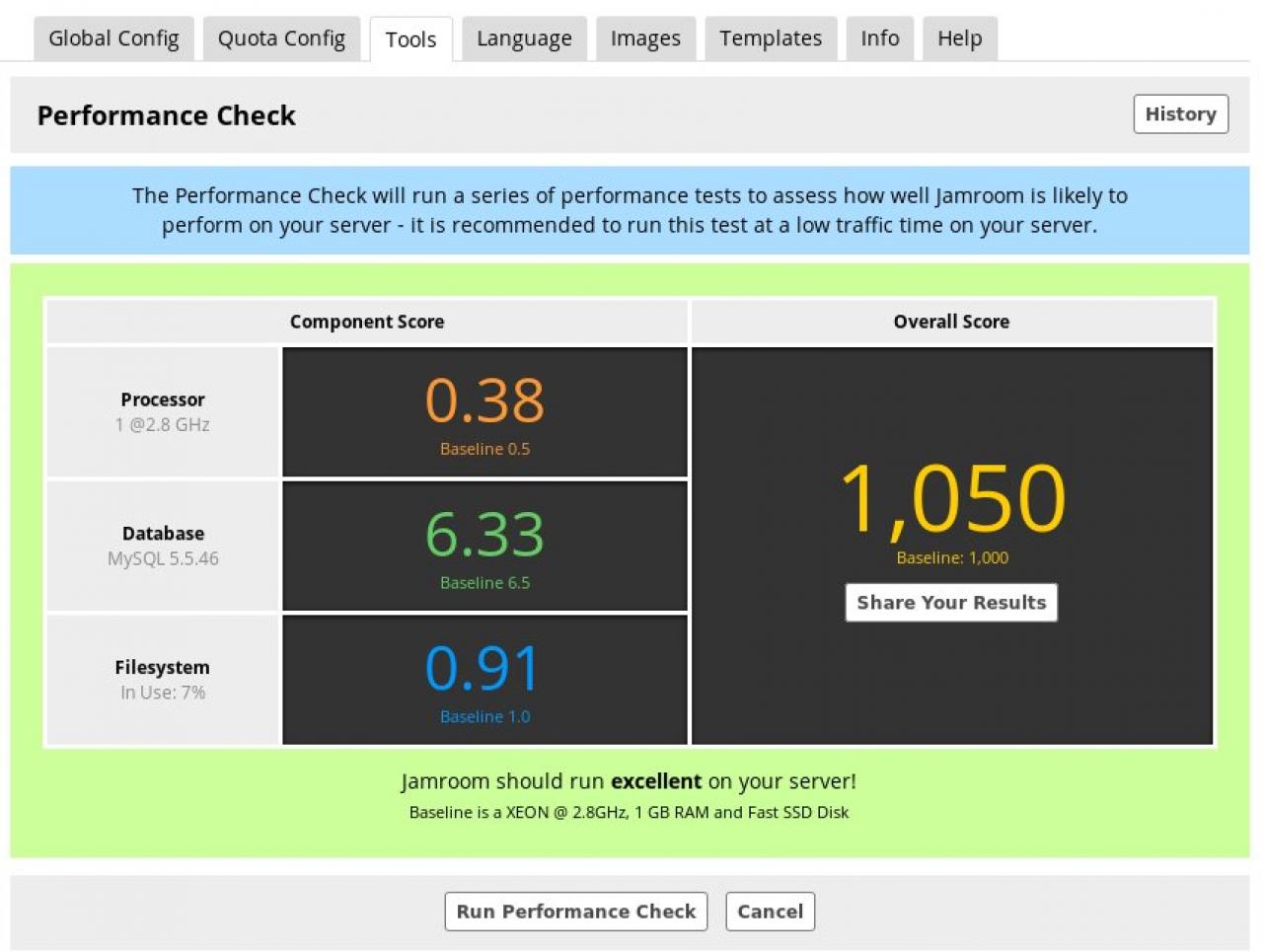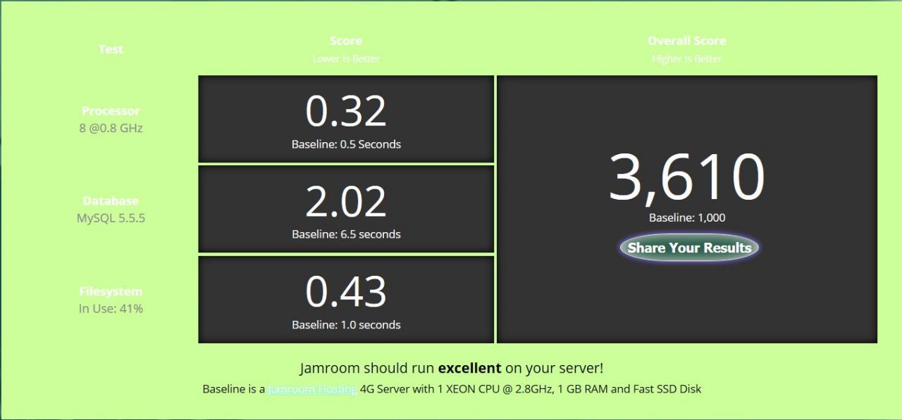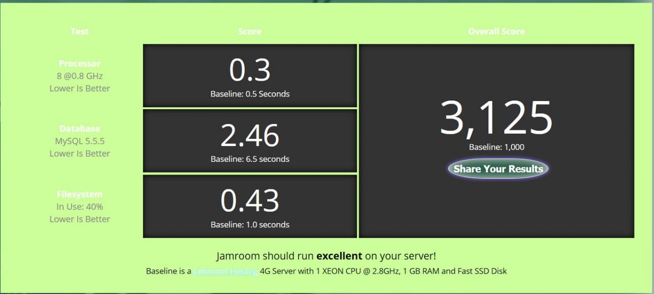 I just create my Jamroom-site, so I bought an inexpensive server. I see a lot of unused server resources. But I got the answer: Jamroom will run very slowly on your server - check out hosting alternatives.