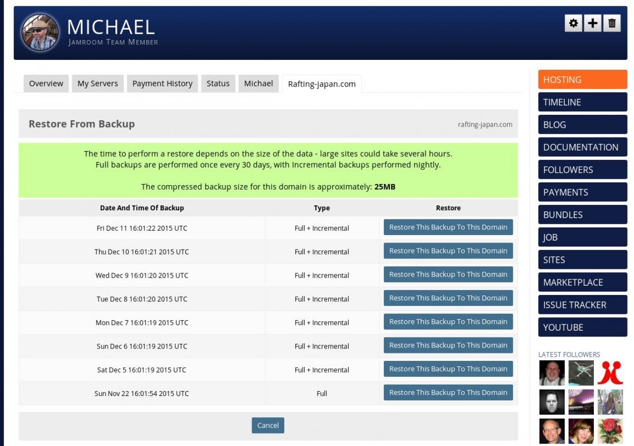 But your hosting company probably has their backups too. On Jamroom Hosting you can restore by yourself by going to the "Restore From Backup" tool in your HOSTING location. (screenshot)
