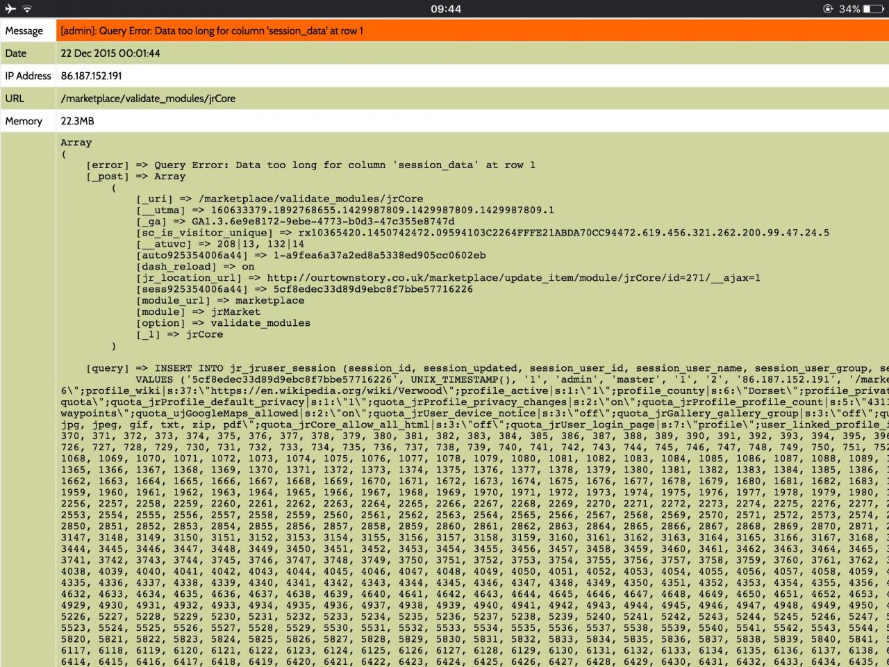 CRI: Query Error: Data too long for column 'session_data' at row 1