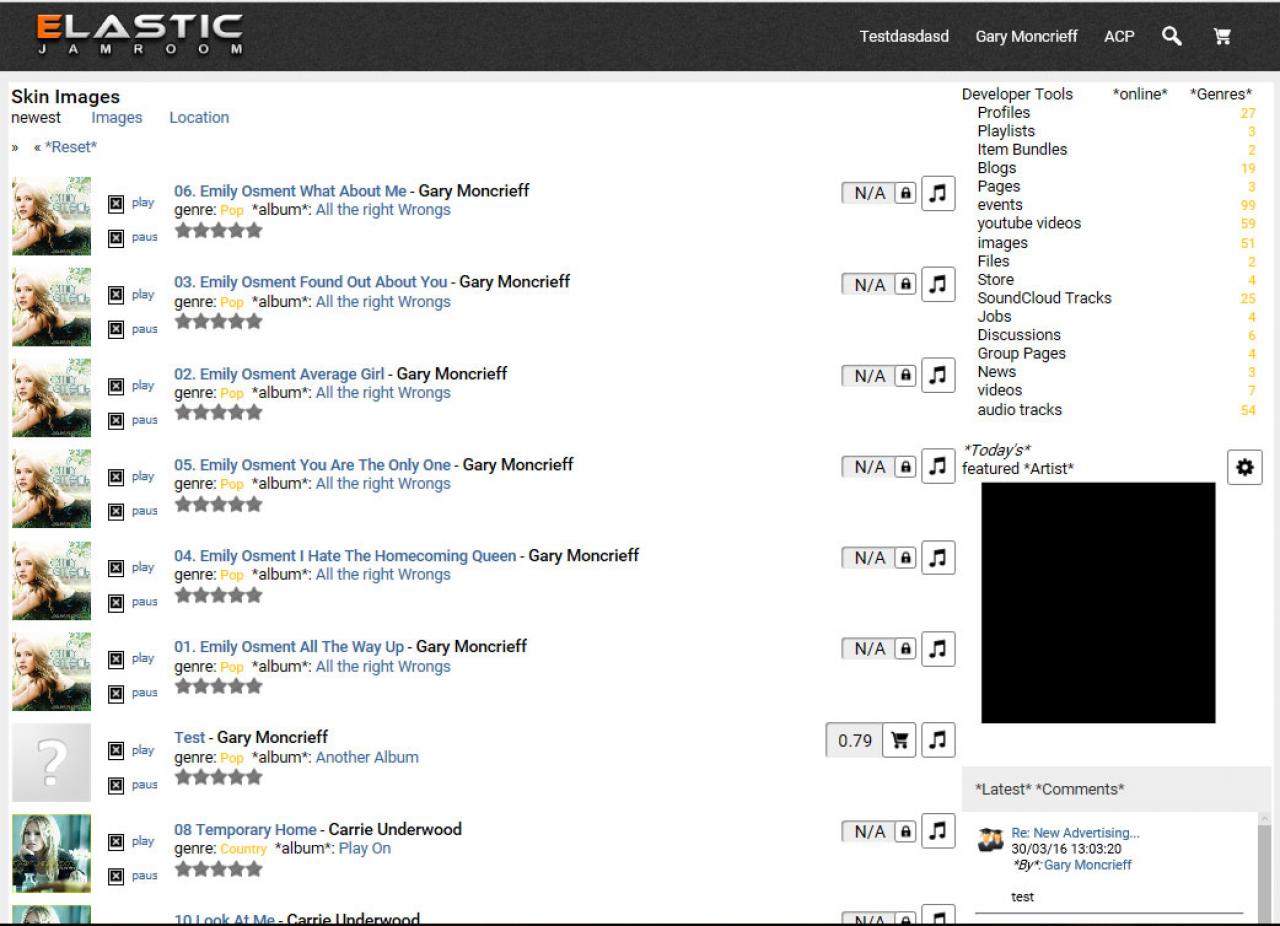 Elastic was made to be simple and for developers to expand to fit their needs. It wasn't really setup for a full blown music site.