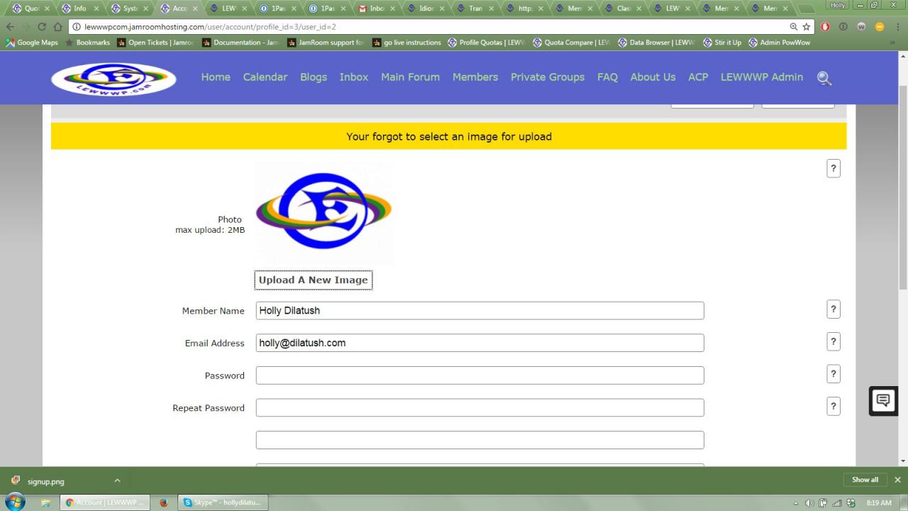 If I go in and edit a profile (my own or as master admin editing others), and edit one of the fields, and then click save, an error message pops up saying that "Ooops. You forgot to upload an image." But the image is there!