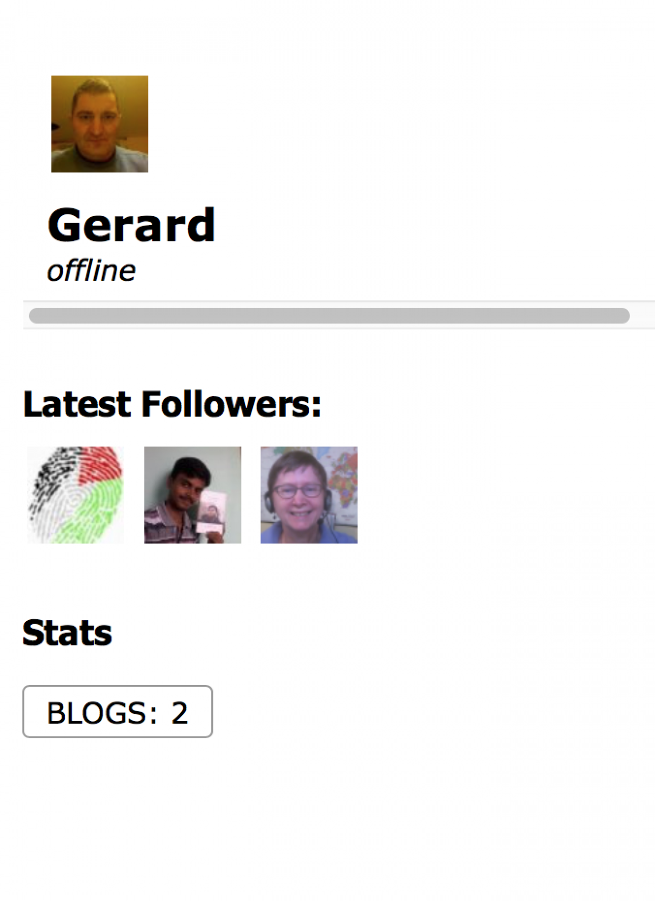 But when I visit Gerard's profile page, Leyla is NOT showing as a follower (Leyla's account is NOT yet active.