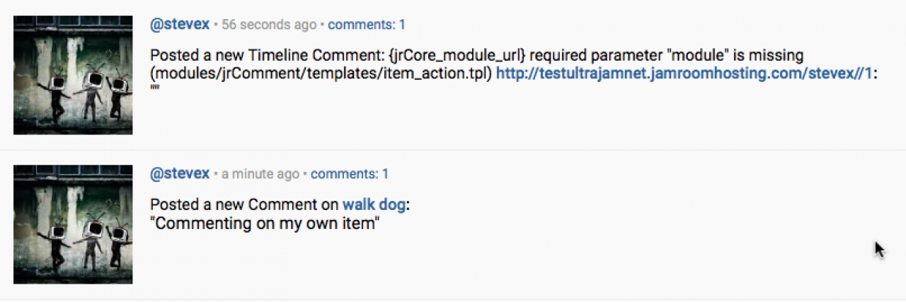 JR6 Beta, timeline comments different when not logged in