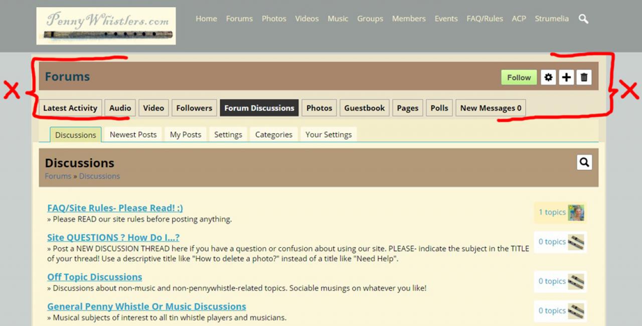 I use a Profile Forum to house my site's discussion forums. I've named that profile "Forums" and given it its own quota. I somehow set it so that most of the "Forums" profile info did not show when people were in the various pages of my site forums.