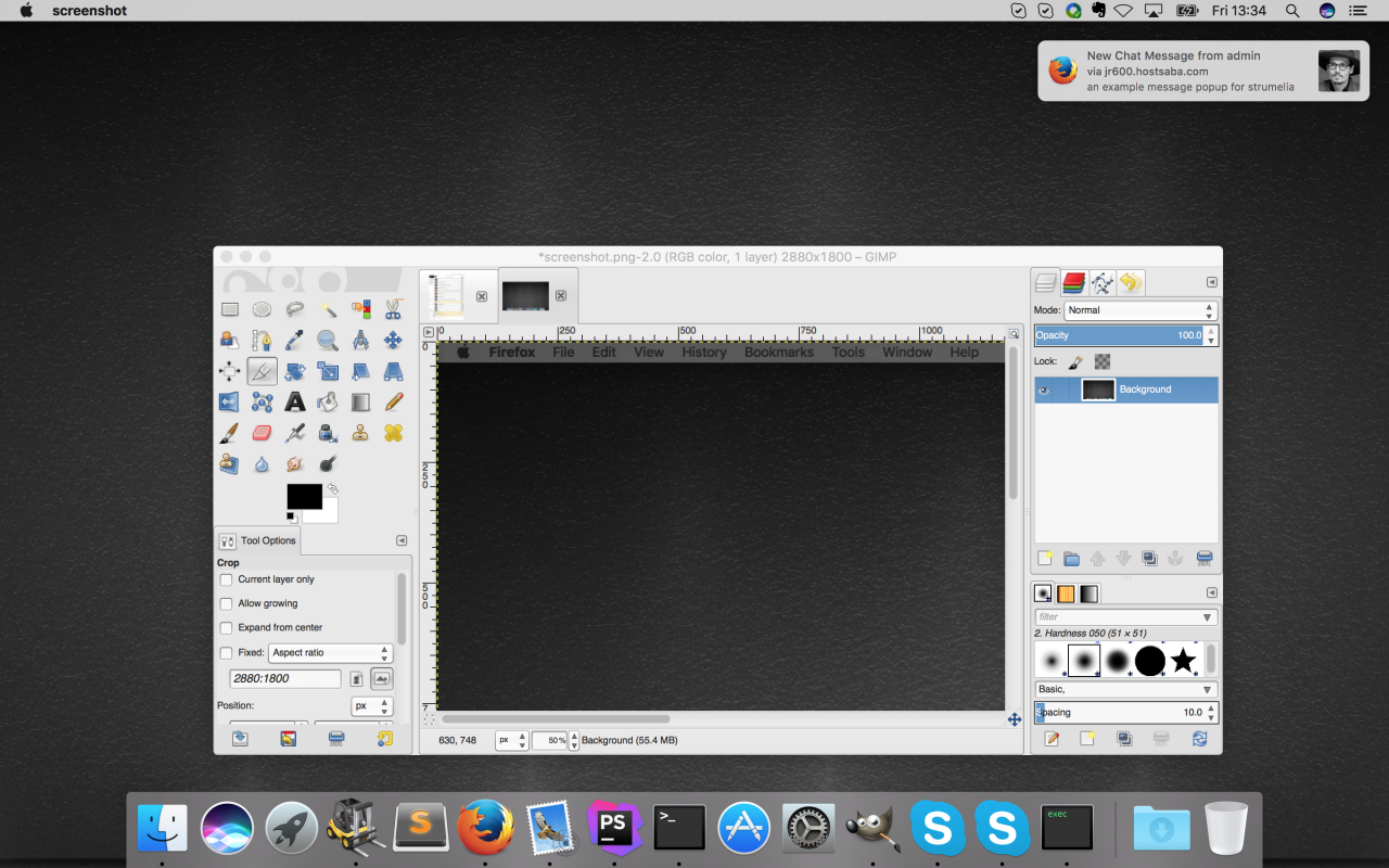 The program in the screenshot is GIMP my image editor that I used to create the screenshot. Firefox is off with the chat open in the not active tab. I sent a message from a different PC and the alert popped up as a system alert with a chi-ri-rin sound.