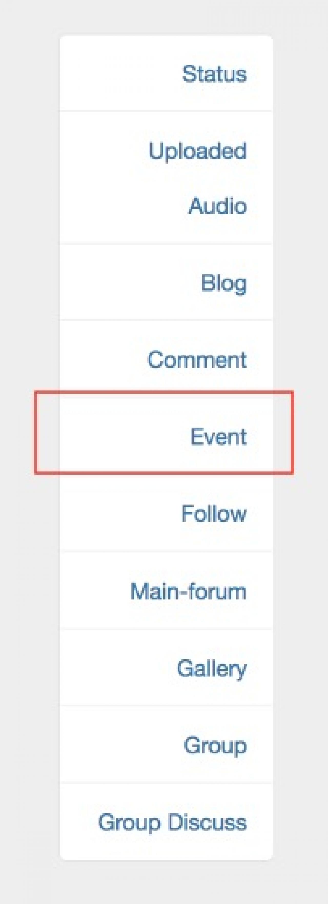 2. Once activated in the quota, go to a profile and you should see "My Events." Click on that and then on then on add new.