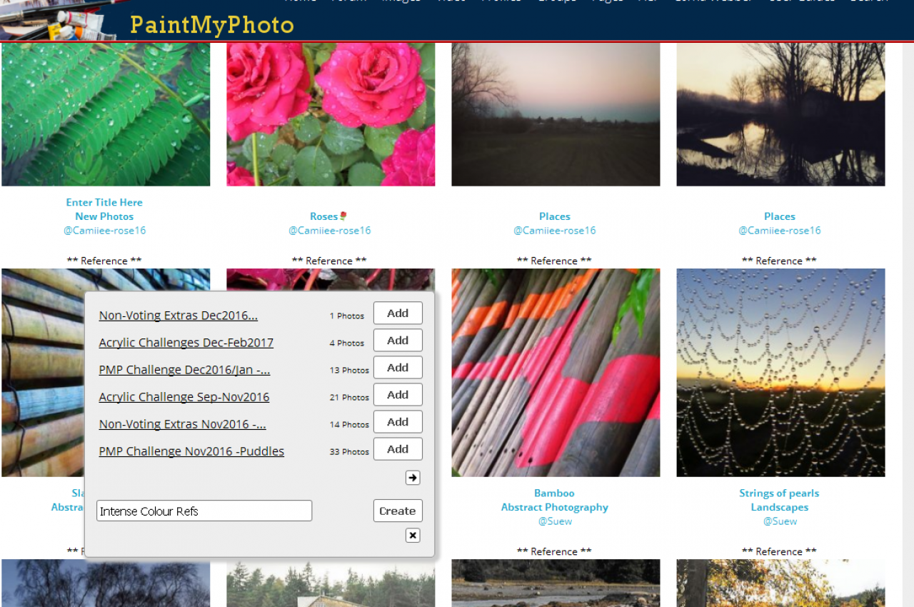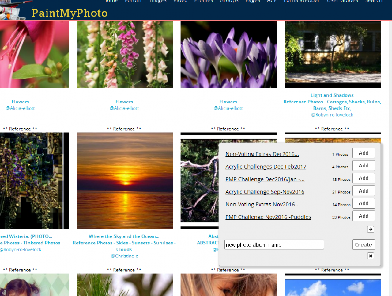 Go to another image and click the camera icon. The pop-up list of existing albums doesn't include the one just created. [After 15 minutes, it's still not showing in the list.]