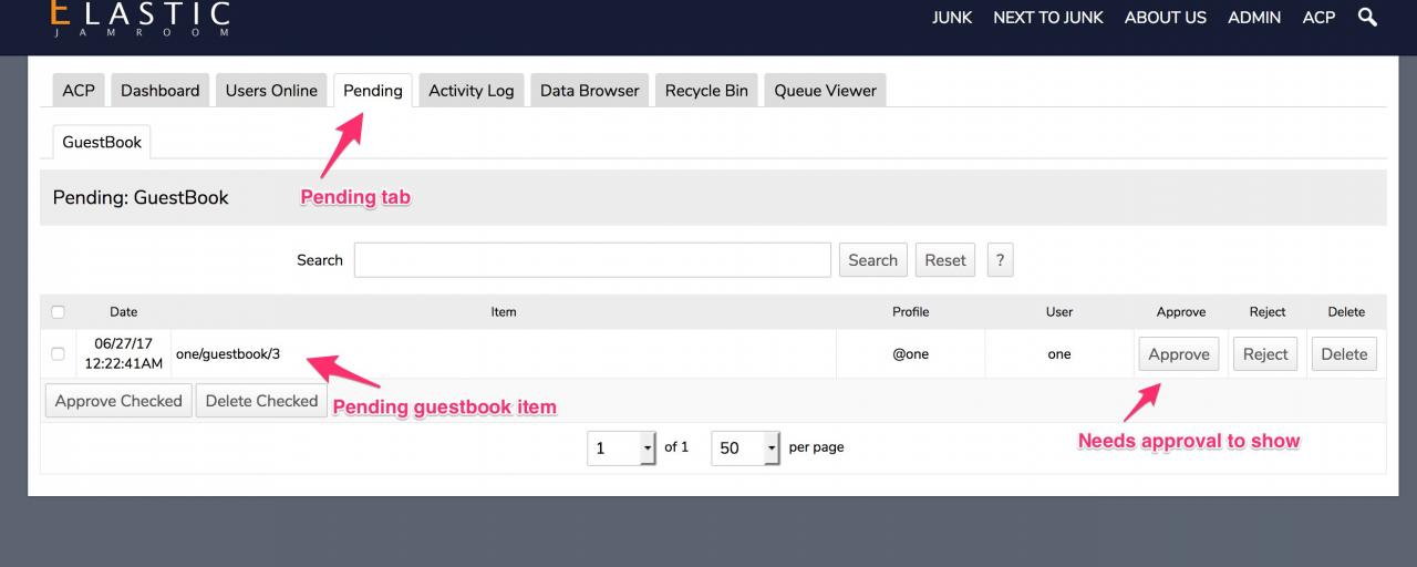 I'm trying to track down an issue I see on multiple jamrooms. Some guestbook entries are not showing. I can see them in the data browser. But I get the "no entires..." message on the guestbook index page. When submitting an entry it acts like something has been entered, but nothing shows up.