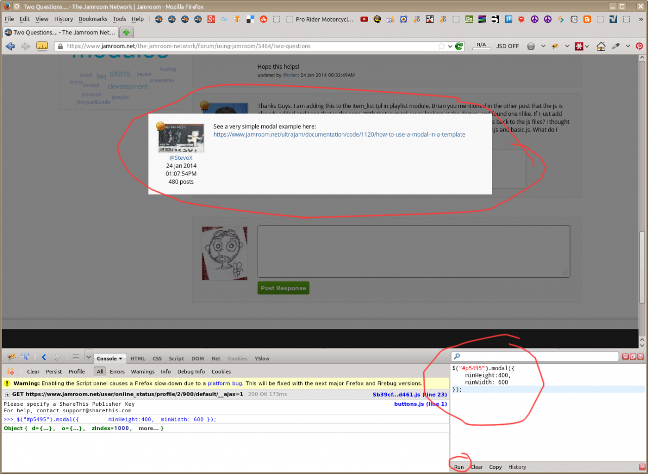 Here is a screenshot of it pulling steves post from above into a modal on this page here.