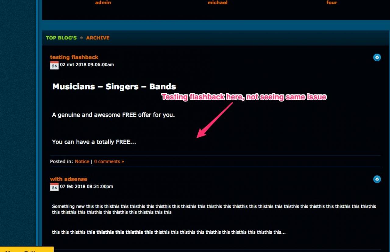 Flashback skin. I just changed the admin blog and for some reason the top part has repeted on three lines. I have checked the input and it was okay. I have run the cache and integrity but it still remains.