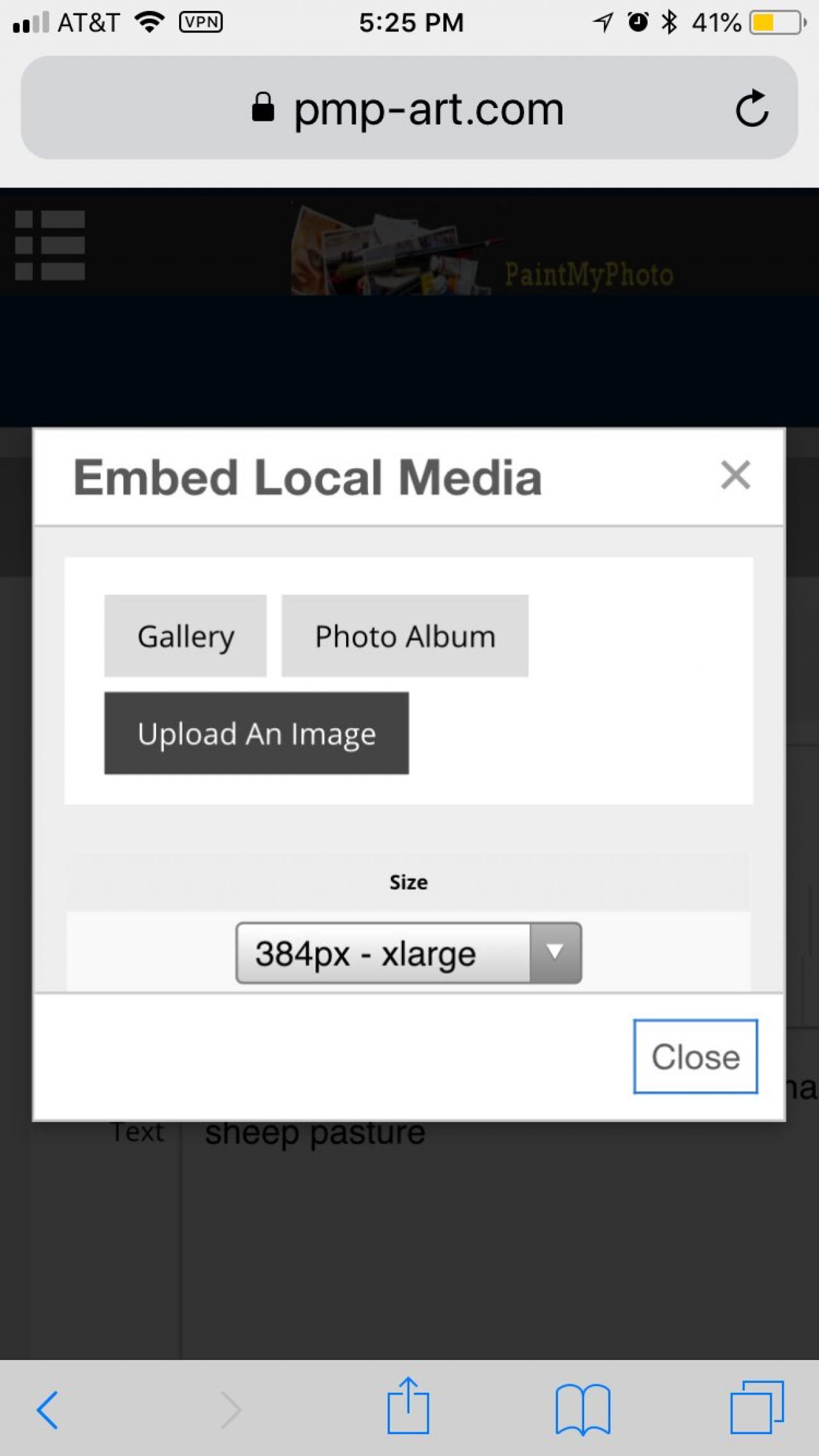 When I do the same on my smart phone, the pop-up box is tiny and the selection buttons are not visible, so it's not possible to embed anything.