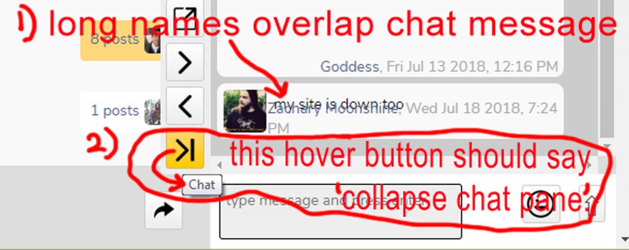 2) the 'help' hover language for the bottom button says merely "chat", when it should say either "collapse chat pane" or "hide chat pane".