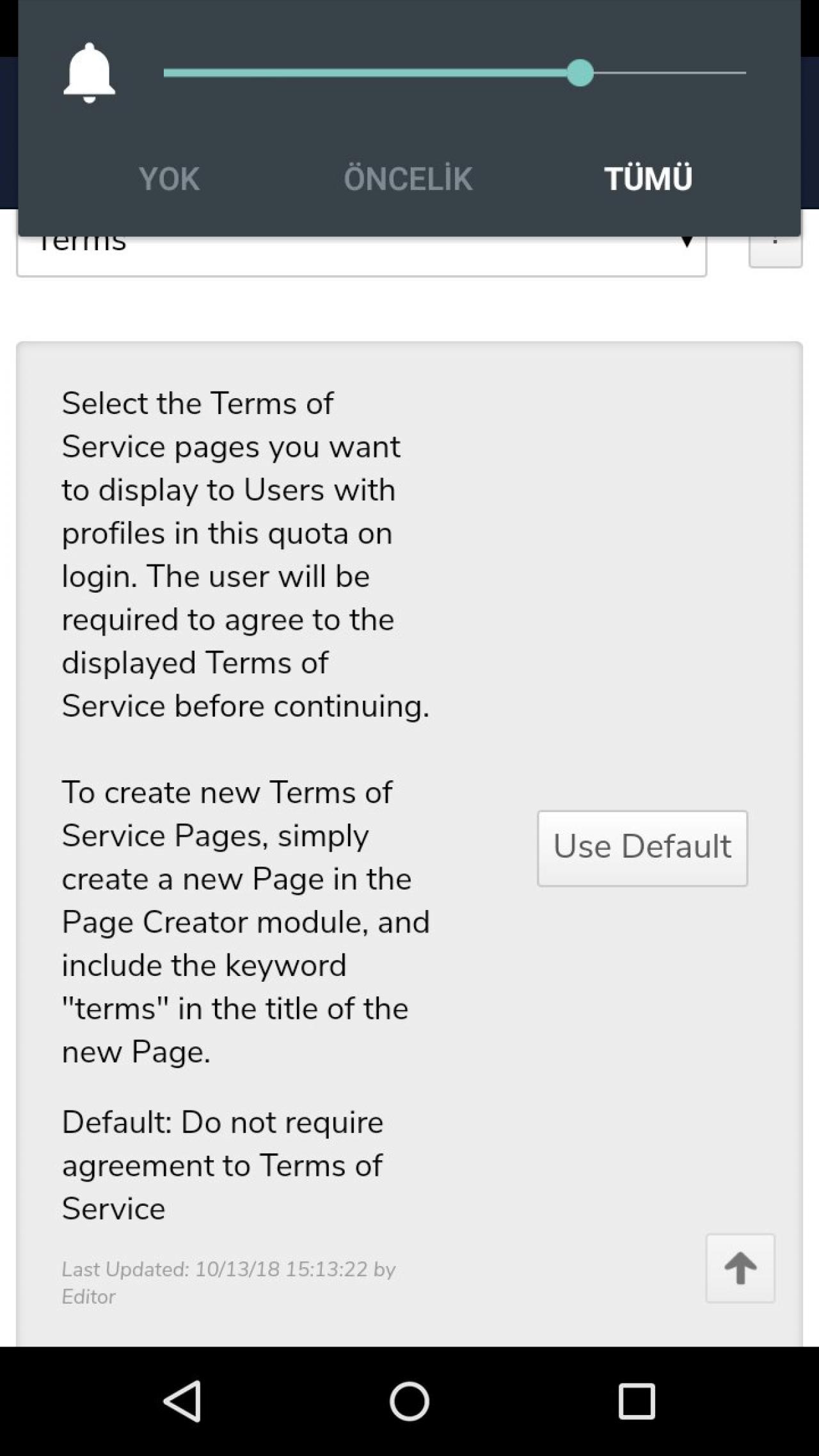 when i use terms of service module it says use "terms" word. on page title....