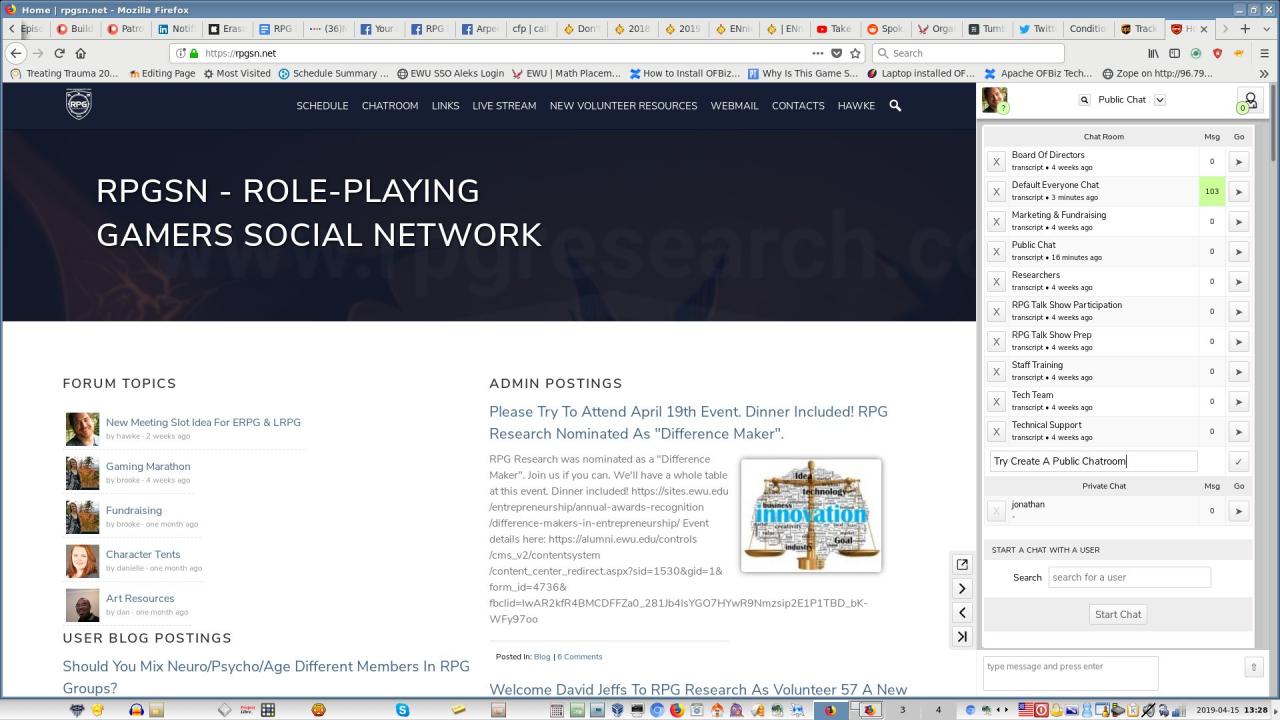 hawkenterprising:....The JR Admin account can't create any chatrooms. Is this normal?...