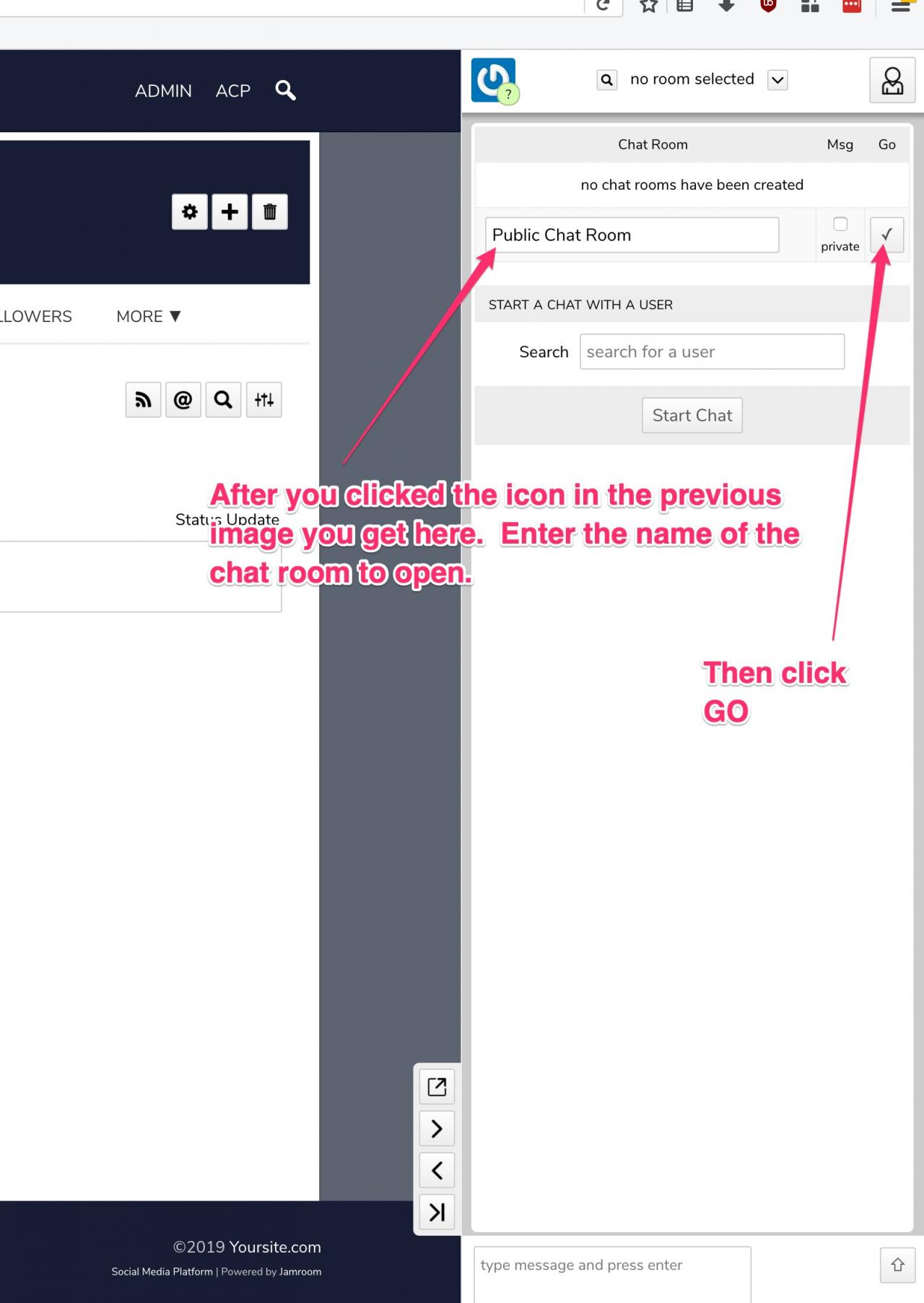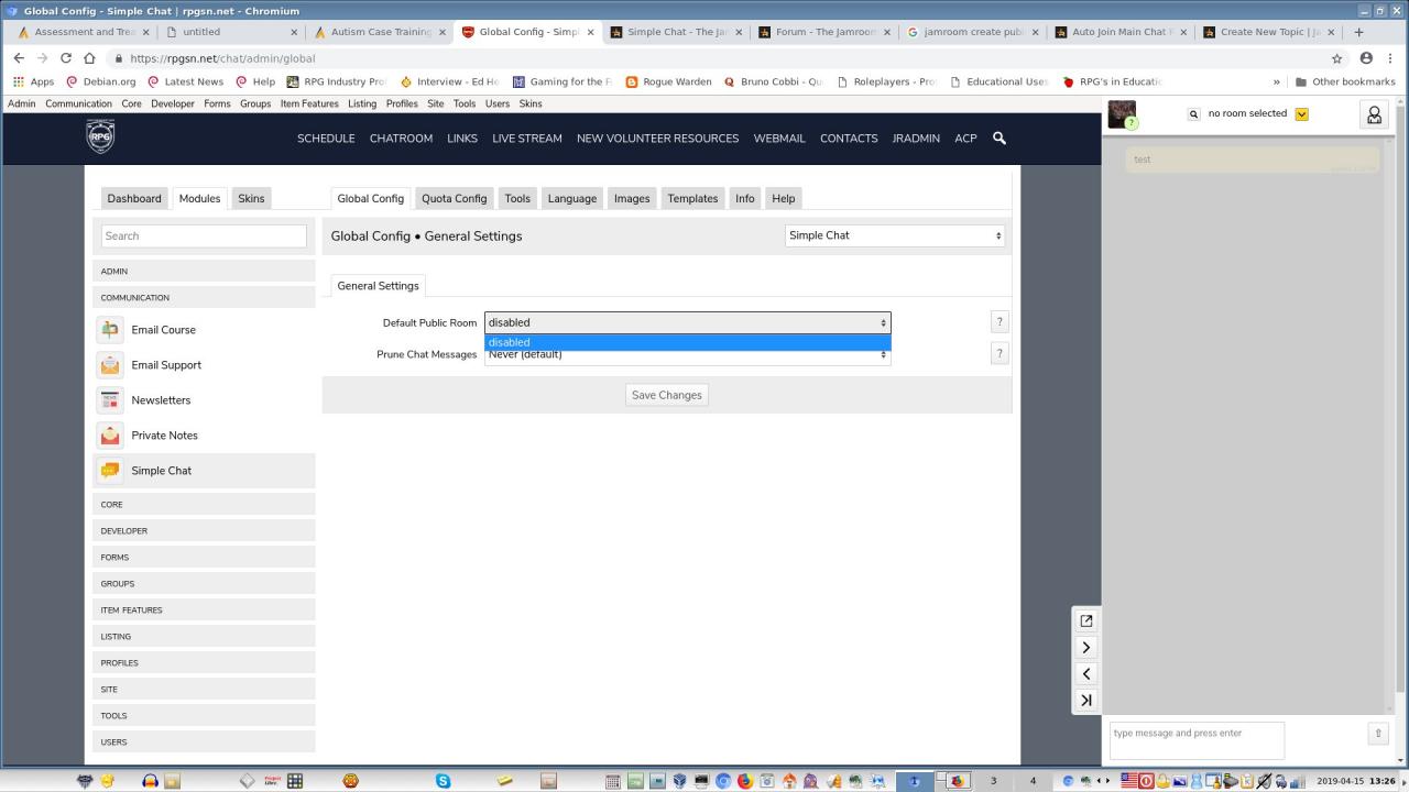 We tried following the instructions here: https://www.jamroom.net/the-jamroom-network/documentation/modules/4543/simple-chat