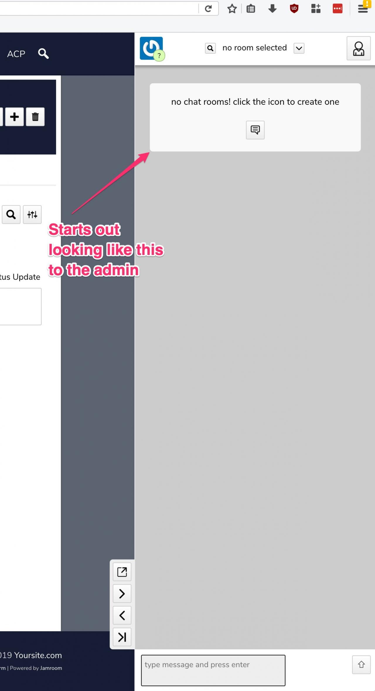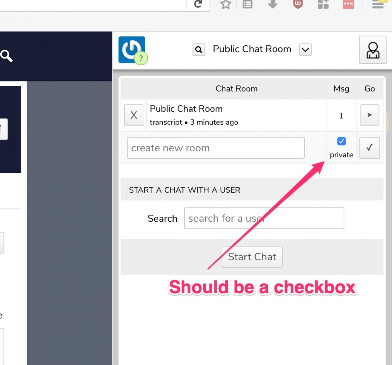 Admin account can't create any chatrooms, no "Public" chatroom option, can't create/select default chatroom.
