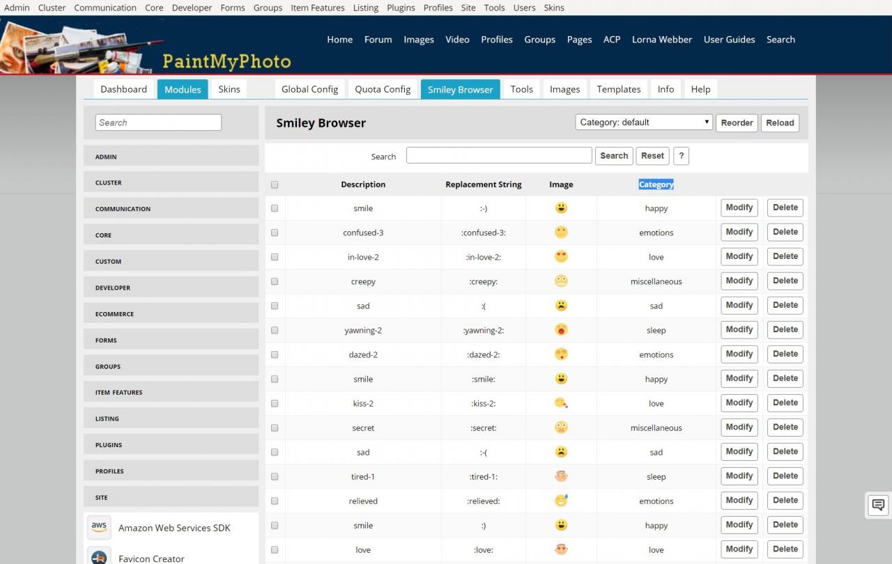 We had the default set of smileys available for users. I was asked if I could extend the choice from the 5 defaults, so I went to the Smiley Support screen and selected "reload". I got loads more smileys than I really wanted, so now I would like to remove the ones that are surplus to requirements.