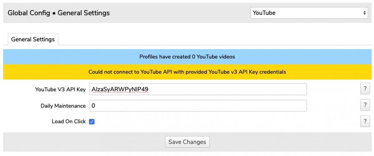 Has there been some change/update in the way the YouTube API key works, as I cannot enable it with the key Google provided?
