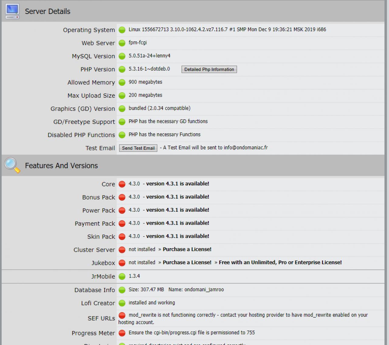I need help to update my website (old version jamroom 4.3) and install it on a modern server