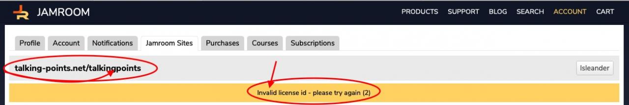 I am unable to release the licence for this Jamroom site.