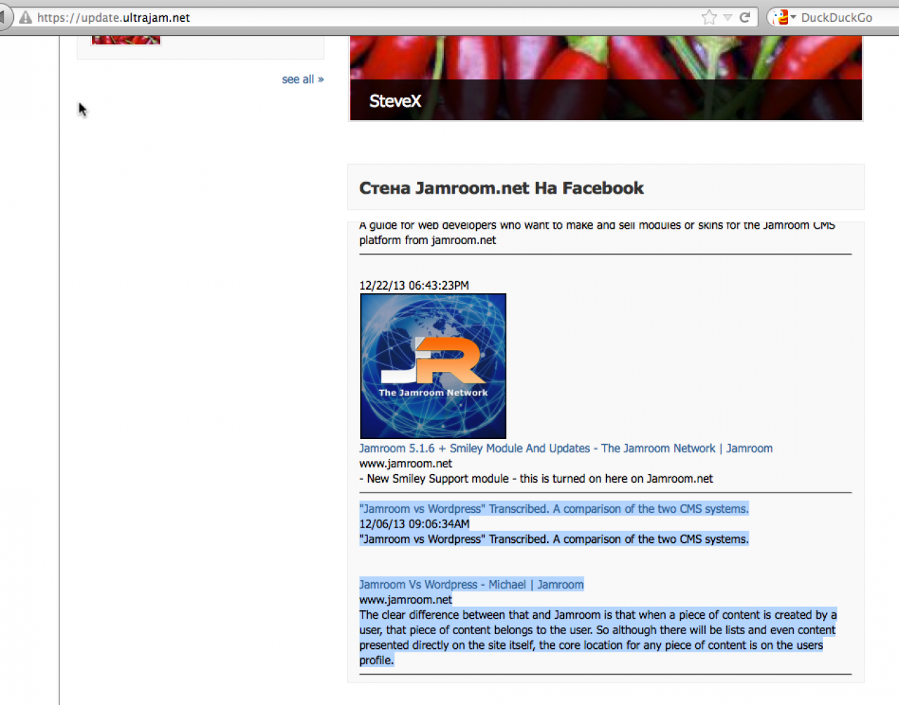 This for "Jamroom Vs Wordpress - Michael | Jamroom" (2nd link on that bottom feed item)