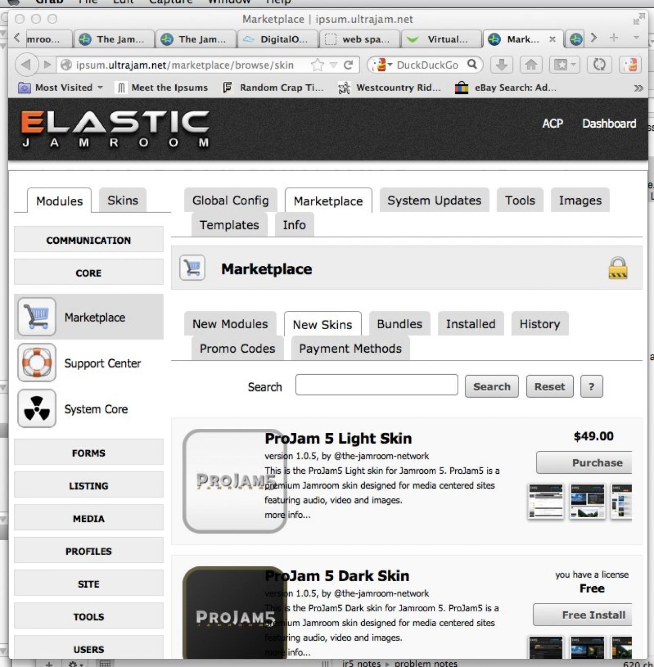 When viewing the marketplace there are some cutoffs (right hand side buttons etc) and some overlap of divs at certain window sizes using Elastic (haven't checked the other skins).