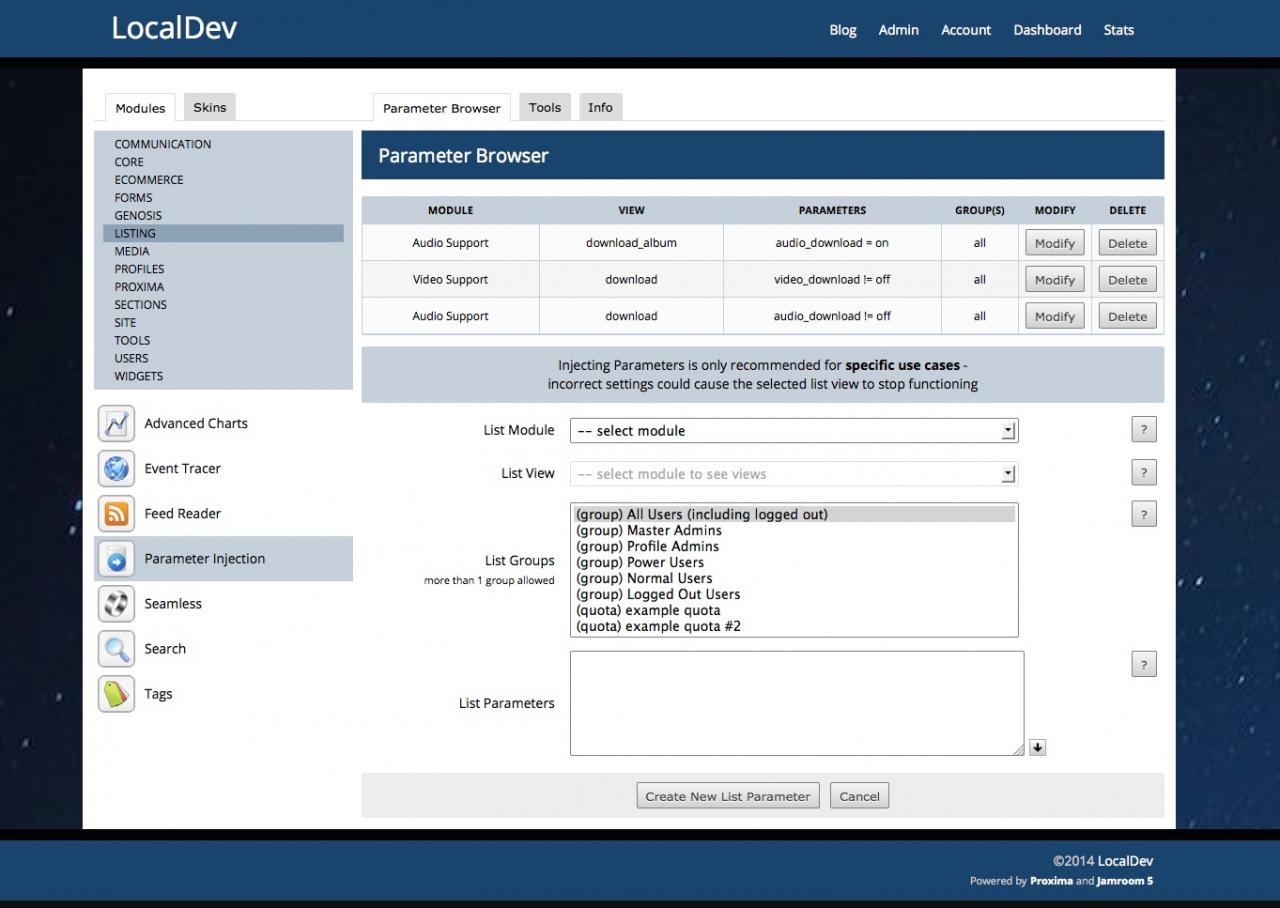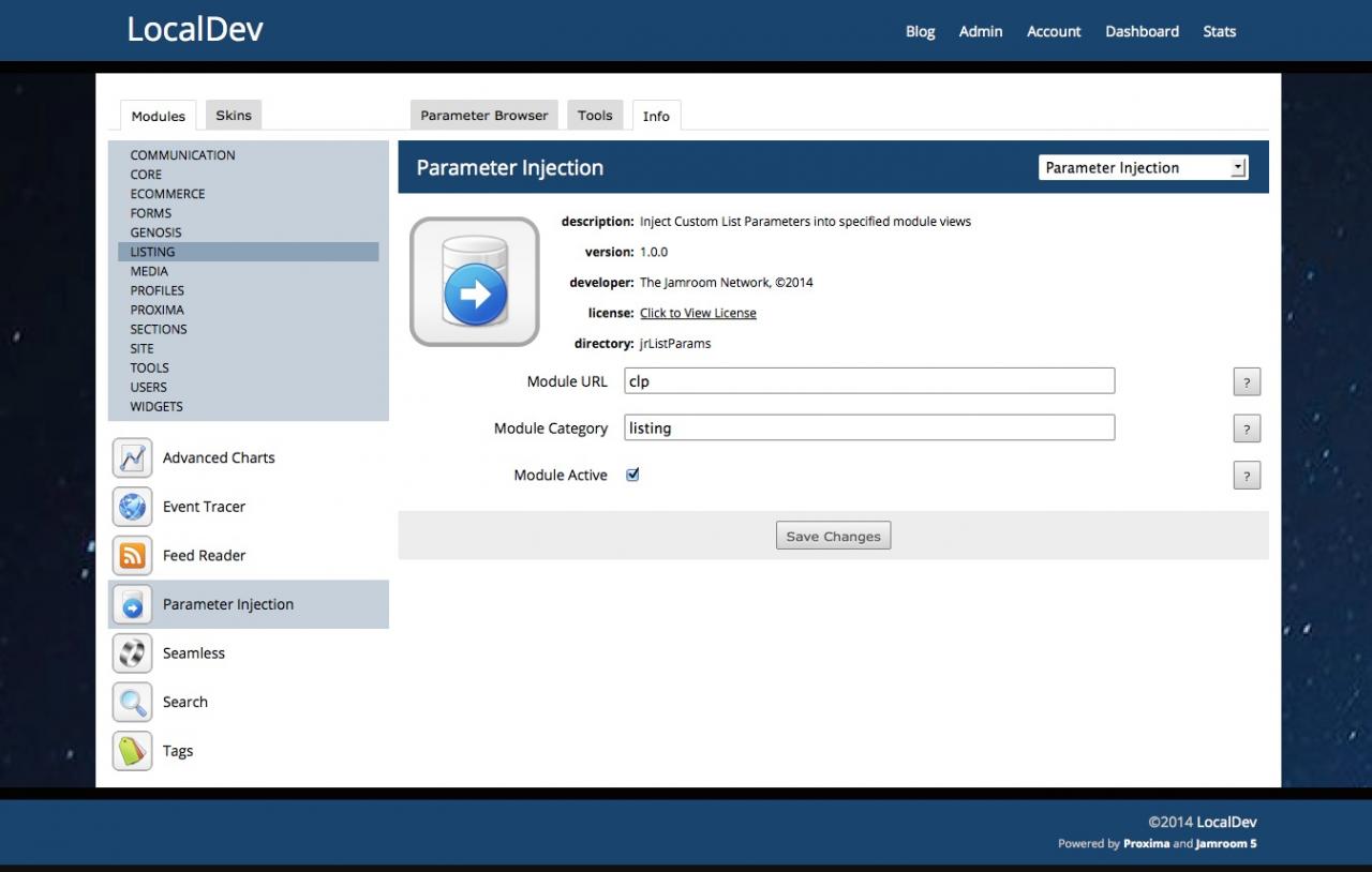 This module is designed for specific, advanced use cases - creating an incorrectly configured injection could cause your site to not function properly, so please use this module with caution and with the input of the Jamroom Network team.