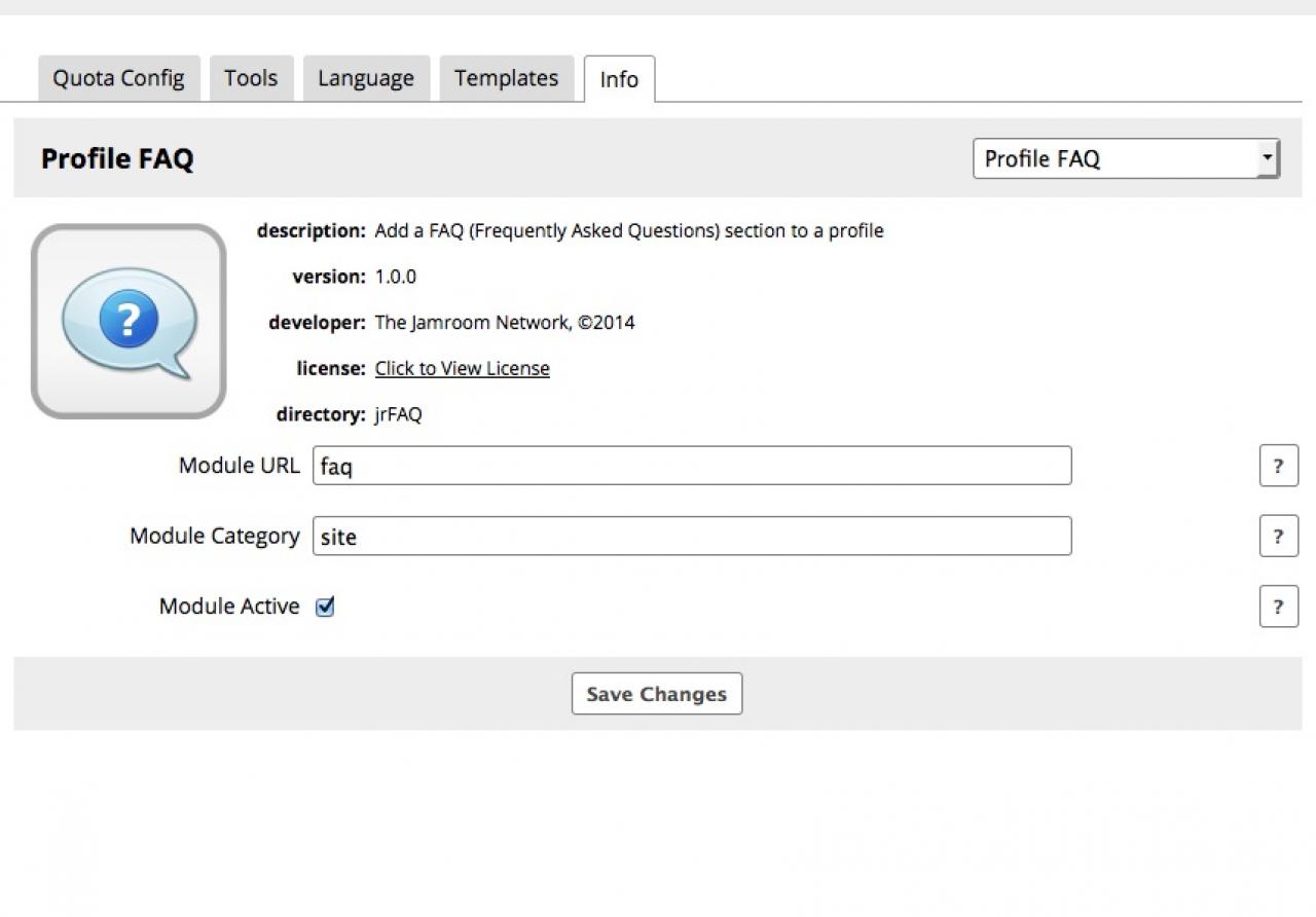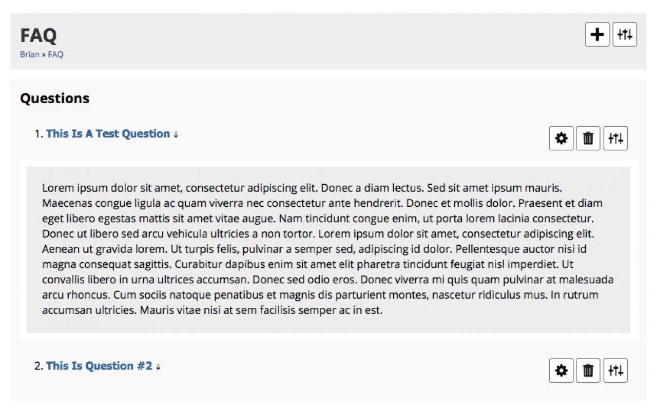 Creates a "Frequently Asked Questions" section on a profile, allowing the site owner to create, update and delete FAQ entries.