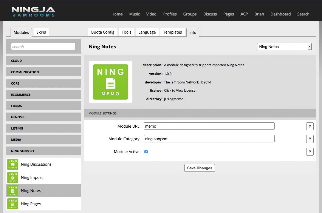 The Ning Notes module is designed to support importing of existing Ning Notes when doing a site migration from Ning to Jamroom using the Ning Import module.
