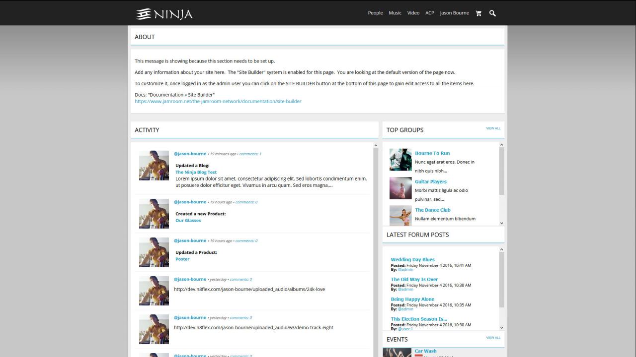 The Ninja Skin is a custom skin designed specifically for Ning users migrating their existing Ning site to Jamroom. With a clean and responsive design, Ninja is easy to customize and use.