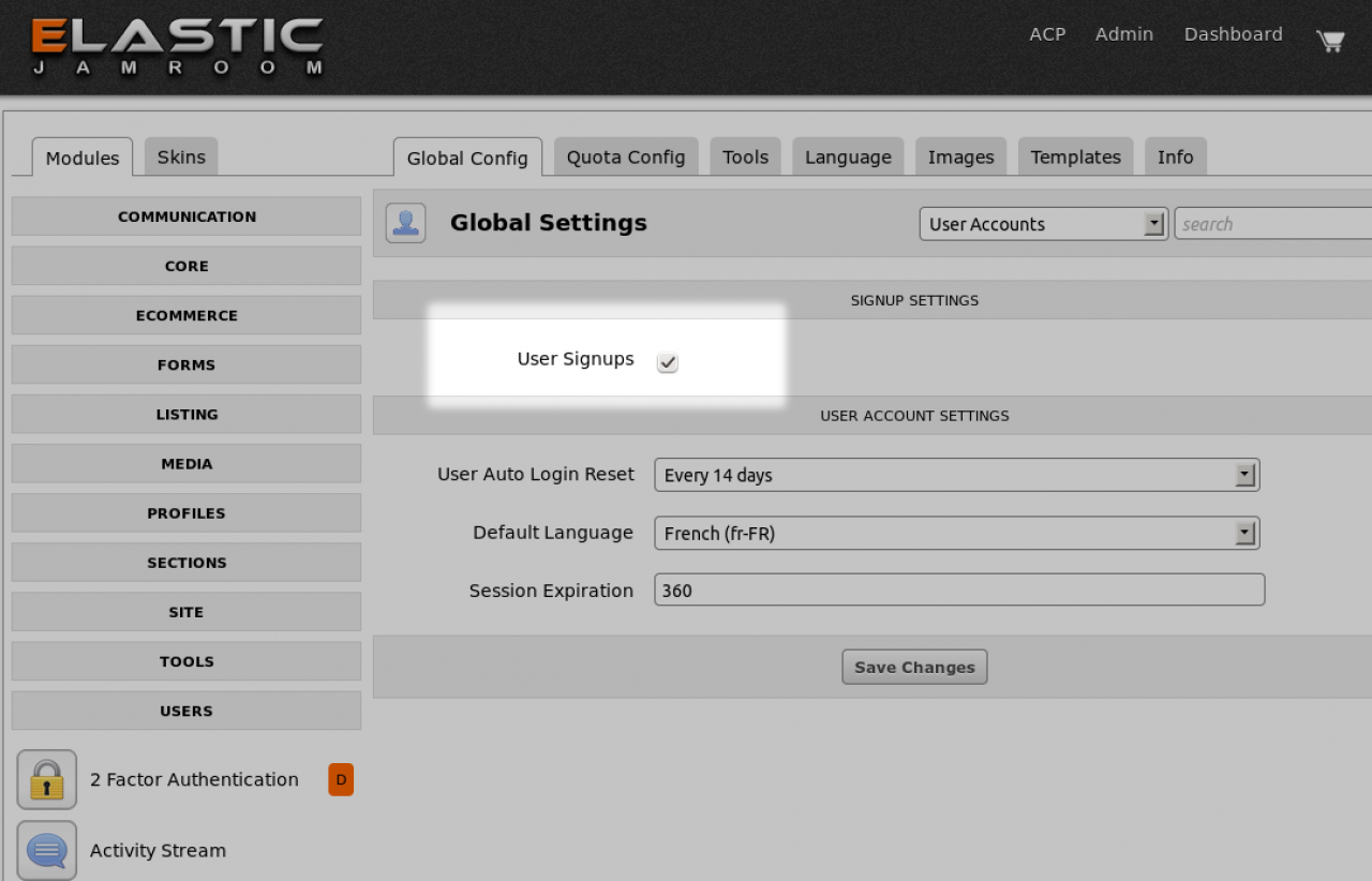 - New Signup Notification Global Config option for notifying admin users when a new account is created