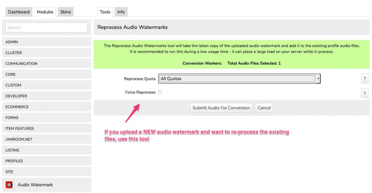 - New: New Quota settings to allow users to upload their own watermark for their audio files