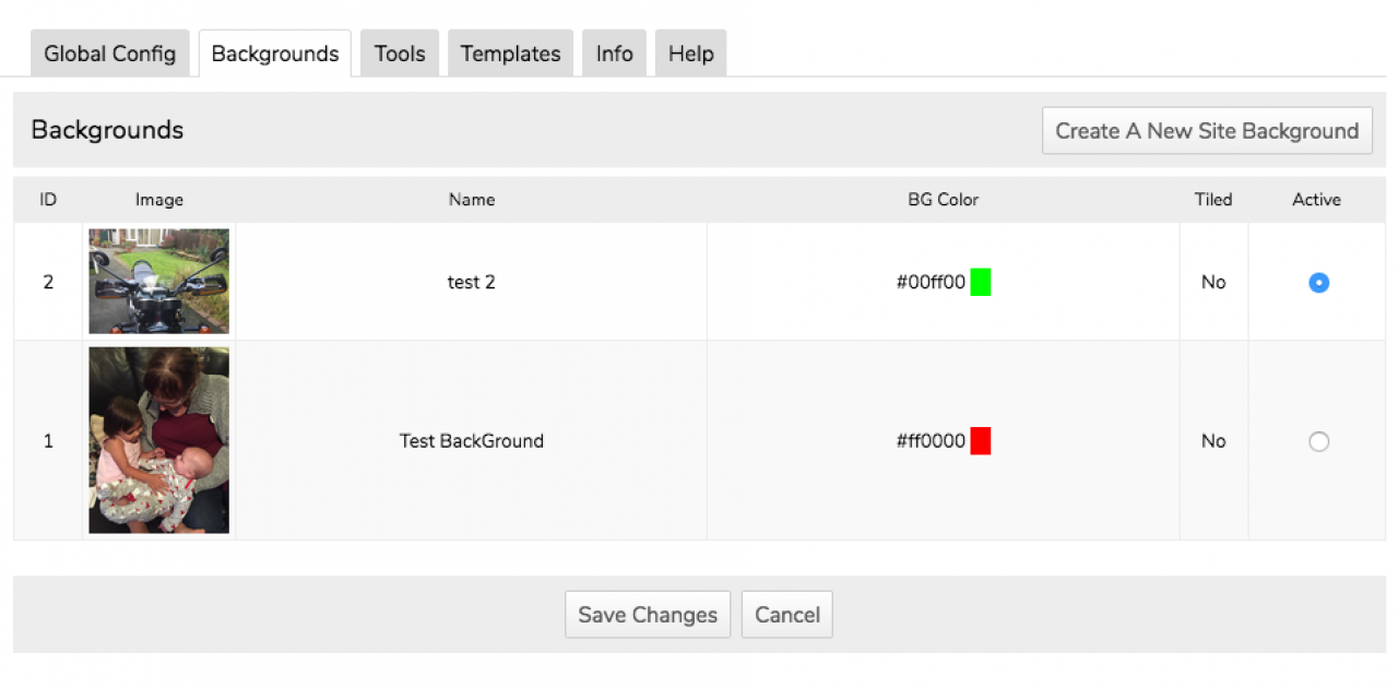 A free module that provides an admin tool to upload and select global site background images.
