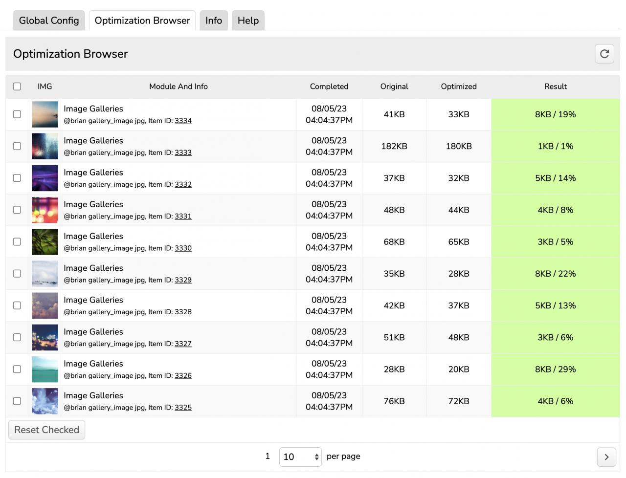 - New: Checkbox added in Optimization Browser to reset images for pickup by optimization worker