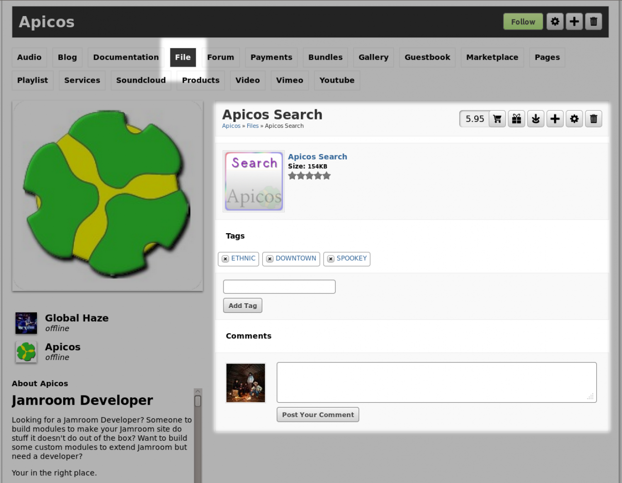 Adds a generic "file" module to User Profiles where the users can upload ZIP files, PDF's or whatever other type of files they would like to make available for download. Integrates with the eCommerce system so files can be sold (requires the FoxyCart module be installed and working).