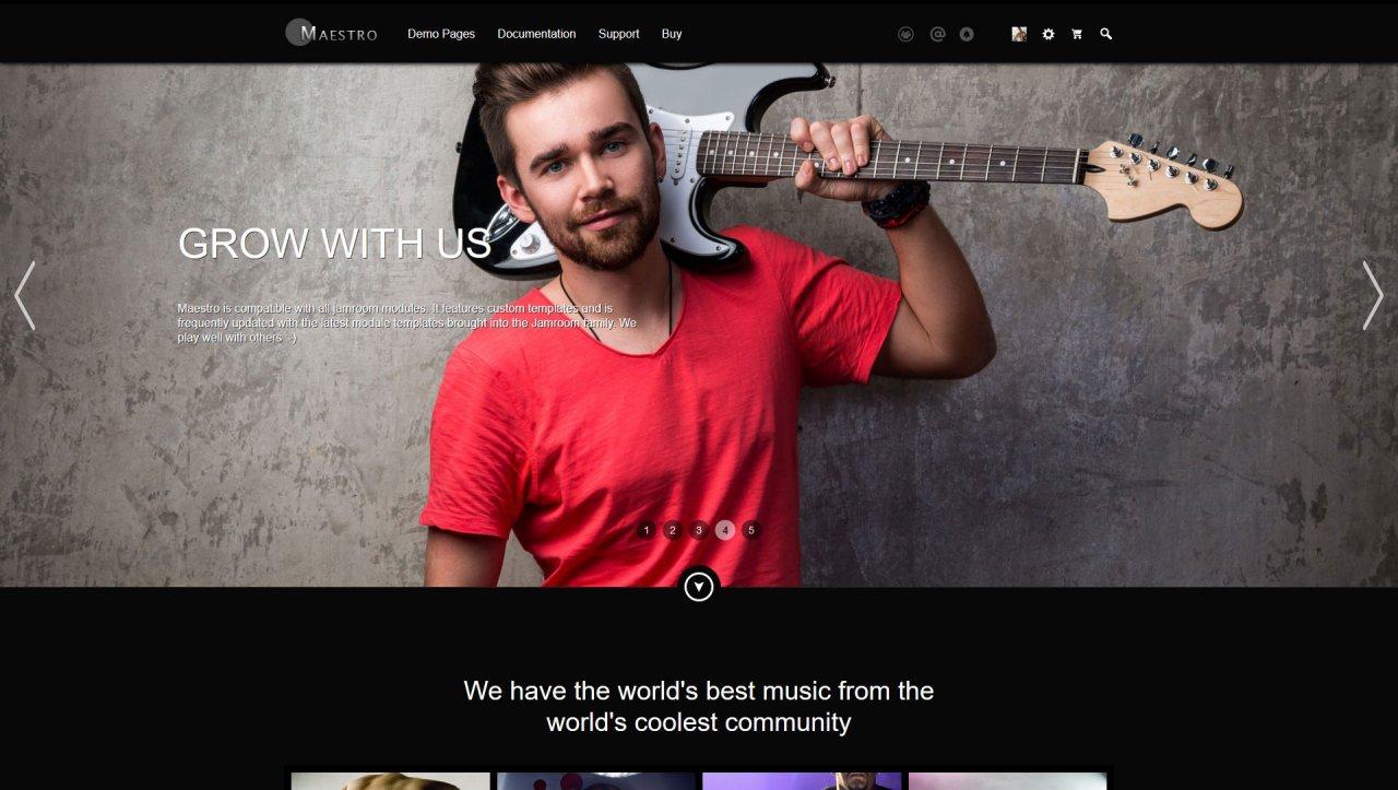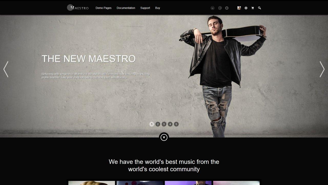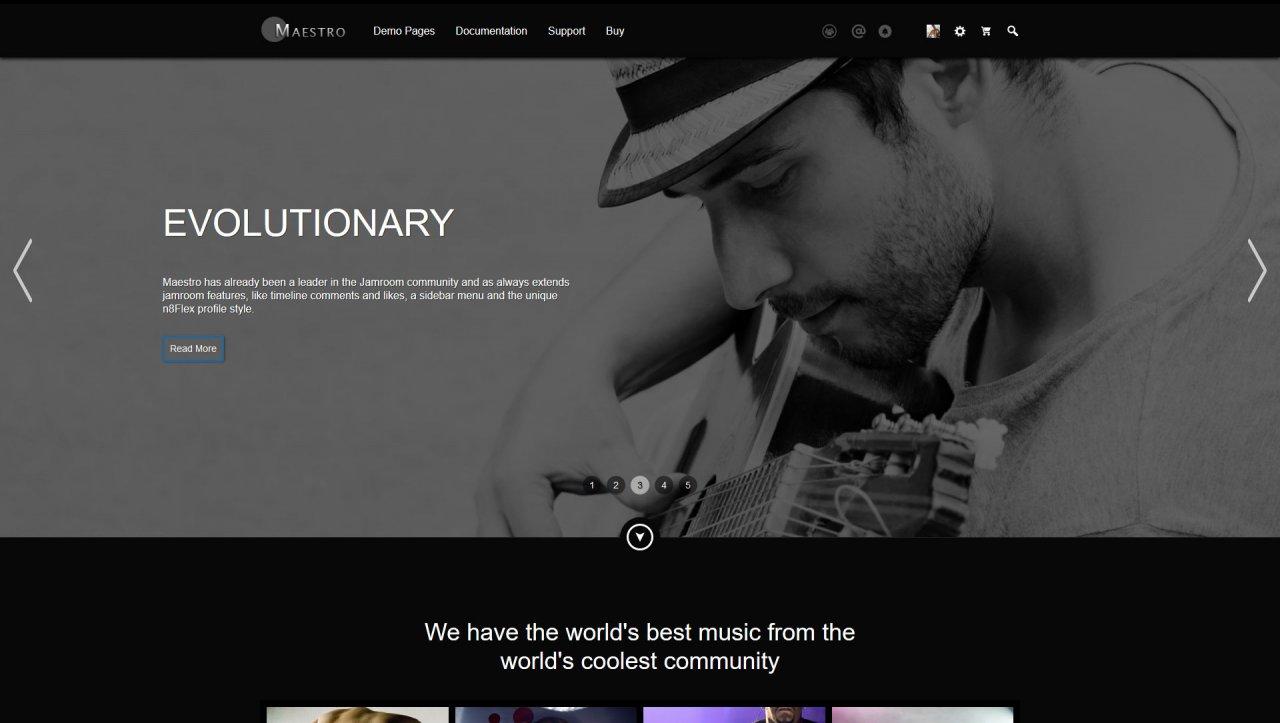 Maestro continues as one of Jamroom's most stylish and innovative skin templates. It now comes with a full-screen slider for promos and marketing and over 180 custom templates that override Jamroom core templates and most module templates. With a timeline that looks familiar to your users and Maestro's tools. Your site will be fun again.