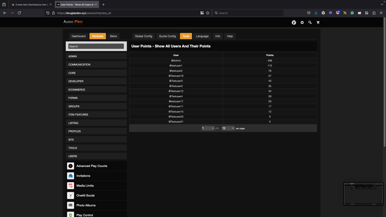 - Config option to show points in drop down user menu