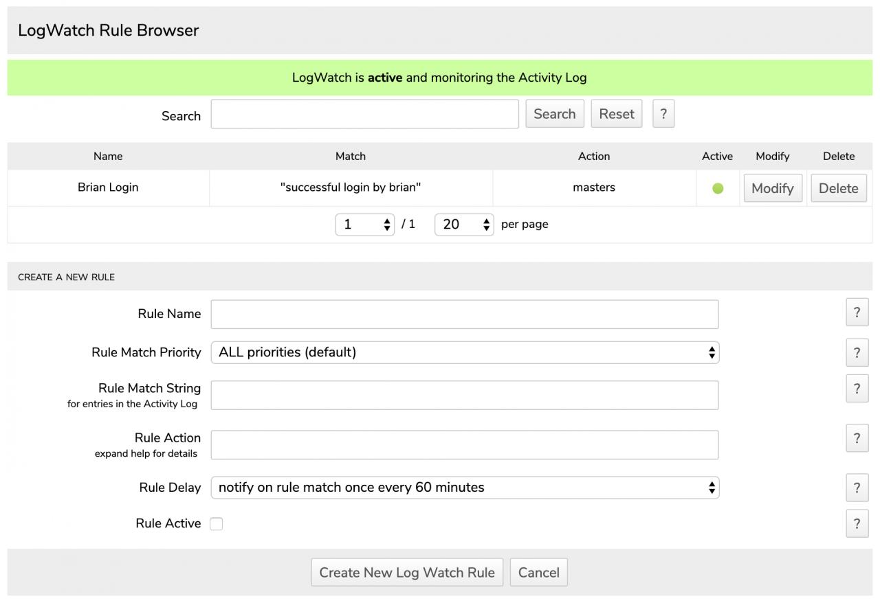 - New: Notification on LogWatch rule browser screen to show if monitoring is enabled