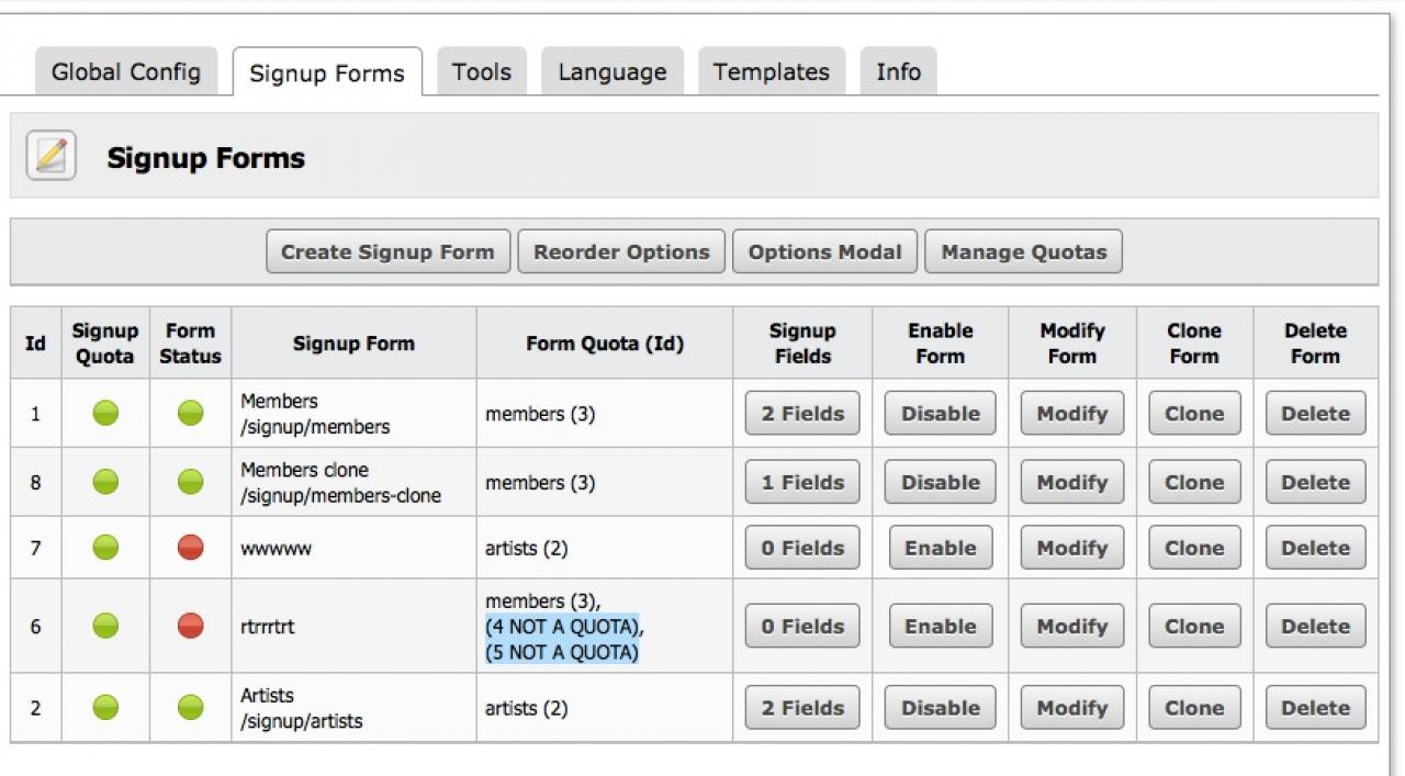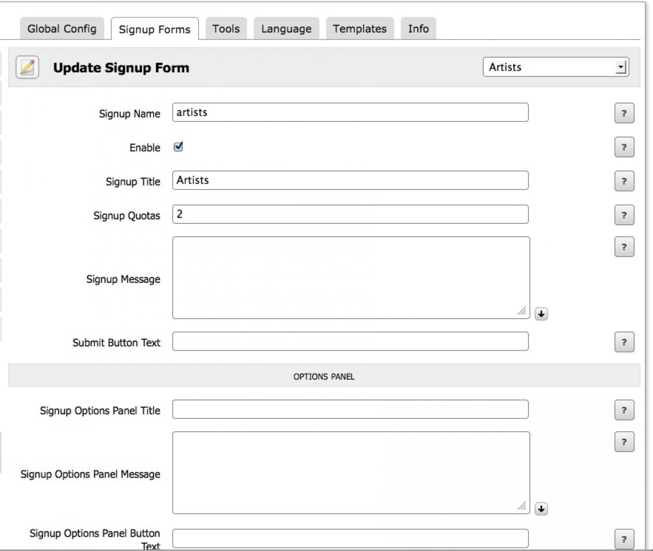 Create and manage any number of signup forms for signing up into different quotas. Forms can be for individual quotas, or offer a choice of quotas for your signup user to choose from.